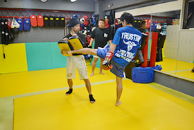 - 安全面を重要視しつつ本格的なキックボクシングを指導致します。パンチ・キックを中心としたミット打ちトレーニング、マスタースパーリングなどが主たるメニューです。試合出場を目標とする方にも対応致します。