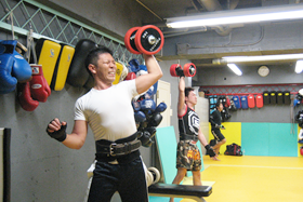 - キックボクシングには筋力は必要不可欠な要素です。普段の練習だけでは十分に補えない筋力UPを目標とするクラスです。